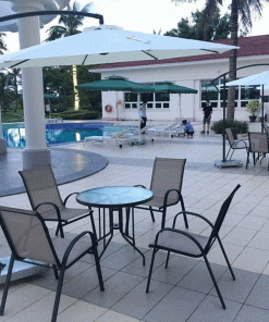 Hiện dù che lệch tâm tại Hòa Phát Đạt có chân đế bê tông nặng tới 200kg/đế, nên khả năng chịu gió mạnh là rất hiệu quả.